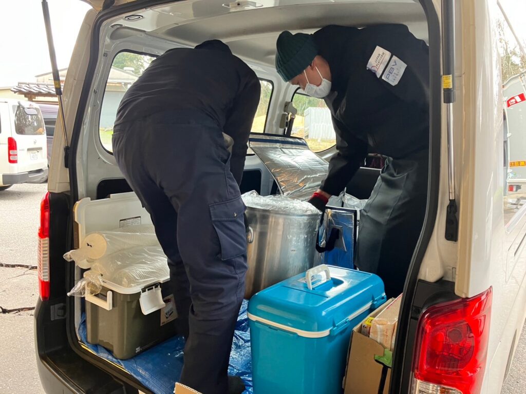 炊き出し当日は、カーナビの時間通りには到着しないことを前提に、時間に十分な余裕を持った移動を心がけましょう。何時間も被災者を待たせてしまったり、炊き出しを実施できなかったケースも耳にしています。また移動の際は、連絡体制や危機管理上も、2人以上での行動をお勧めします。